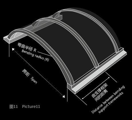 曲面型實(shí)心板采光窗在拱形結(jié)構(gòu)支撐上的支撐方法和適當(dāng)?shù)暮奢d表