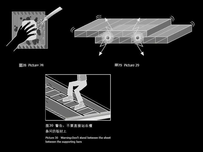 1. 安裝或維護中空板材時,要注意板材不適于承受一個人重量的集中荷載當在任何種類采光屋面上工作時,建議使用梯子或防滑踏板。
